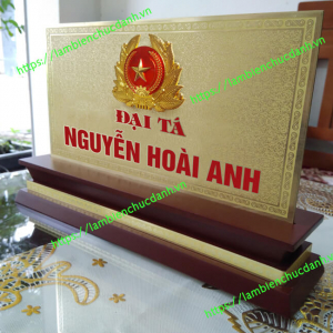 Làm biển chức danh quân đội để bàn đế gỗ mặt đồng dày 2mm.