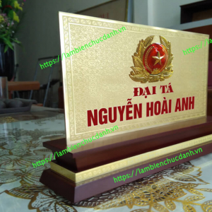 + Biển chức danh quân đội để bàn đế gỗ mặt đồng, với chi phí hợp lý cho 1 tấm biển sang trọng chì từ: 1.200.000 đ mà thôi